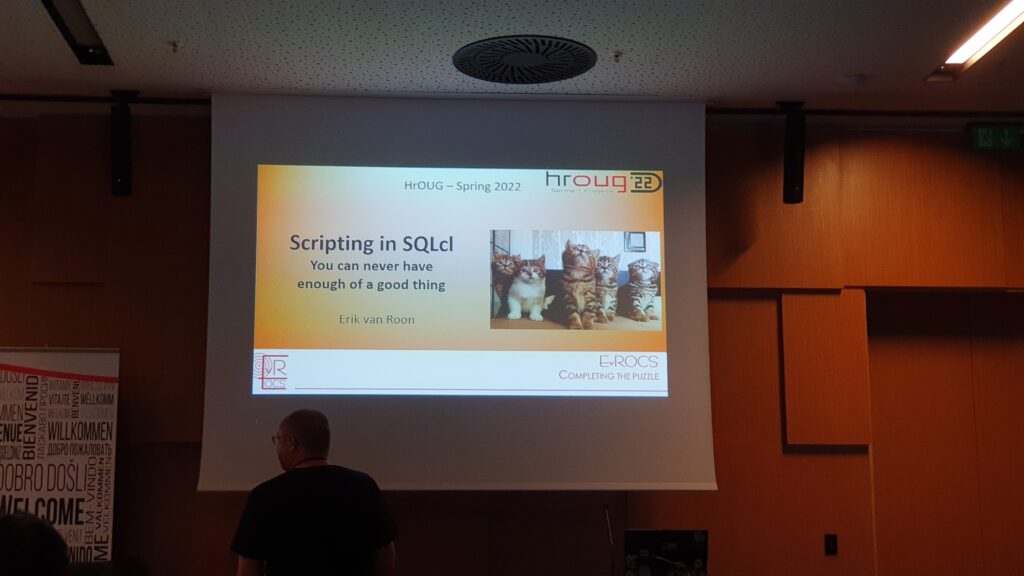 Prvi dan konferencije započeo je s govorom dobrodošlice Ranković Davora koji je ujedno i predsjednik HrOUG-a, a zatim je uslijedilo predavanje prof. dr. Srića Velimira koji je je sveučilišni profesor emeritus na Ekonomskom fakultetu u Zagrebu, konzultant hrvatskim i međunarodnim tvrtkama iz područja managementa, a također ima iskustva i u radu s informacijskim tehnologijama te coachingu. Svojim predavanjima objašnjava koliko je bitno motivirati sebe i druge kako bi se razvila pozitivnija i uspješnija radna kultura koja je veoma bitna za ostvarivanje poslovnih ciljeva koji su postavljeni sa strane organizacije.